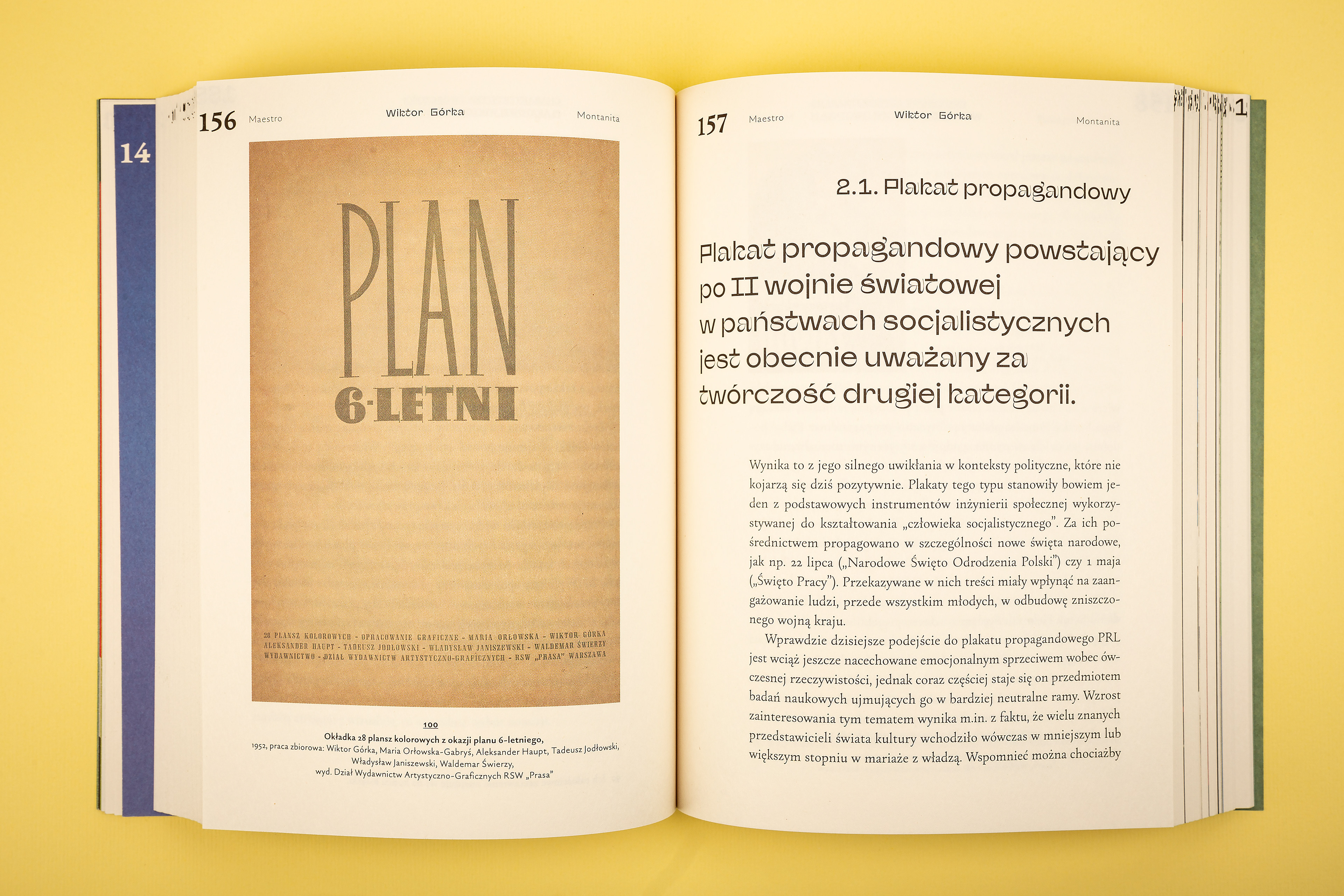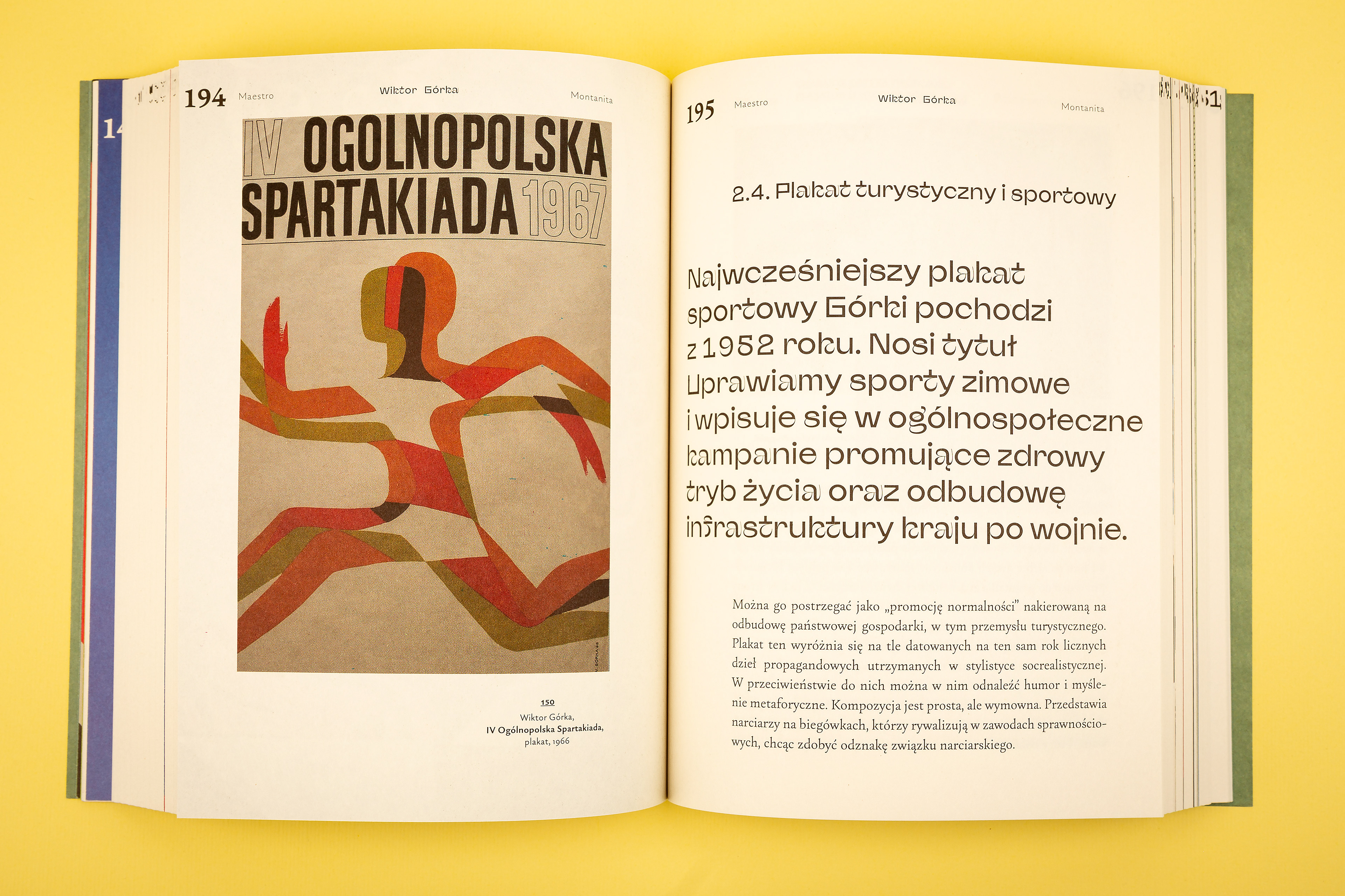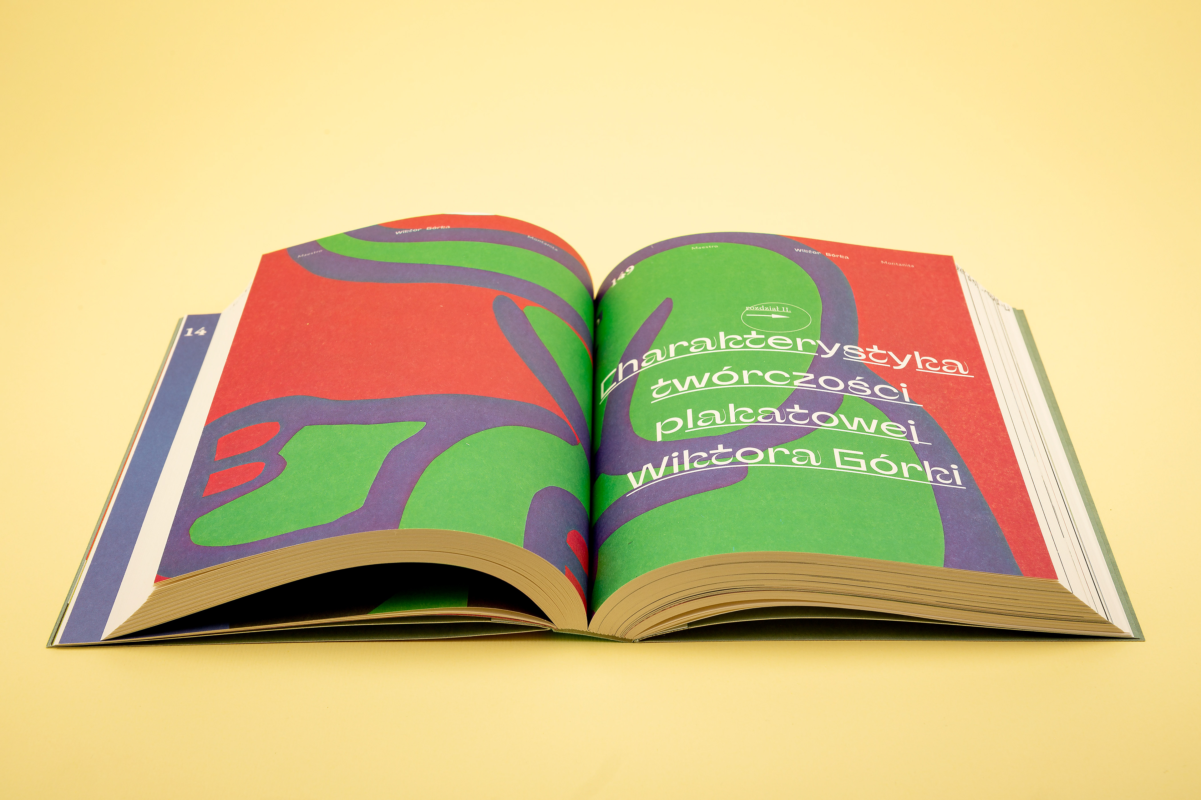 A publication presenting the work of one of the most important poster artists of the golden era of the Polish School of Poster – Wiktor Górka. The design combines Polish typefaces with expressive layouts inspired by Górka’s style, while maintaining full readability and accessibility. The production concept used authentic materials—paper, board, and fabric—along with custom folding covers and neon fabric spines. Based on detailed archival research, the book was published in Polish and English, received a distinction in the Most Beautiful Polish Book of the Year 2024, and became part of museum and university collections in the USA, China, and the UK.